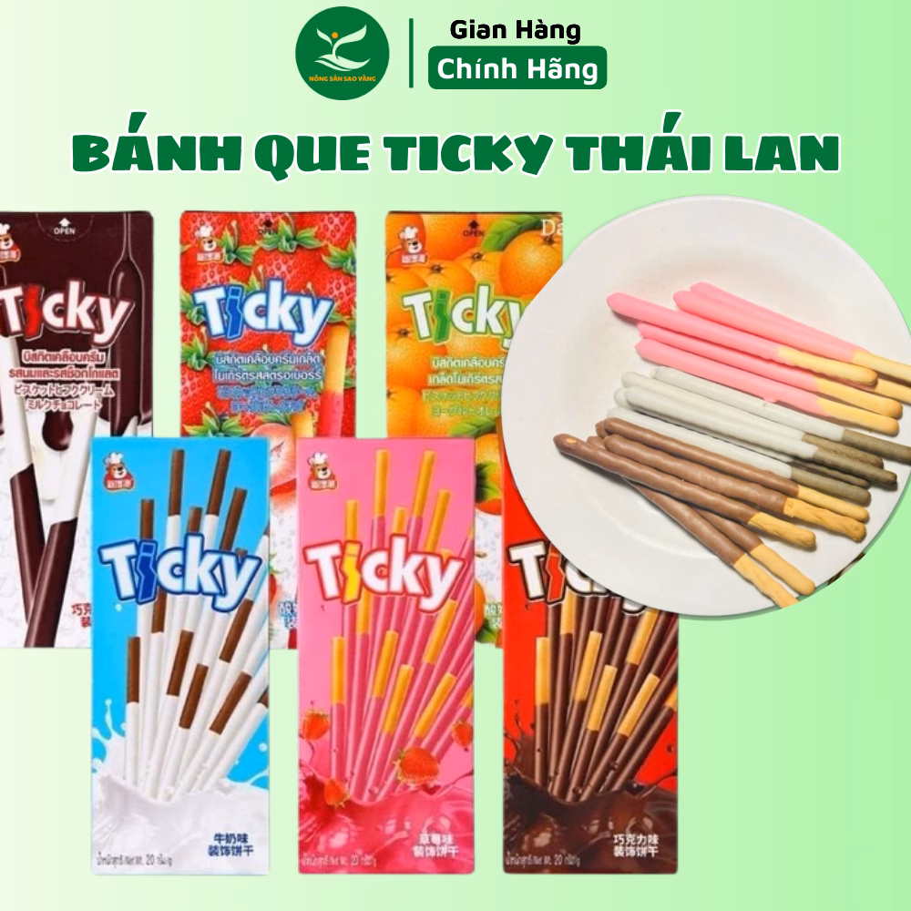 🔥 Bánh Que Ticky Socola Sữa Dâu Tây Thái Lan |Hộp 20G/ 6Que SIÊU MLEM, Đồ Ăn Vặt Cao Cấp đang giảm giá!