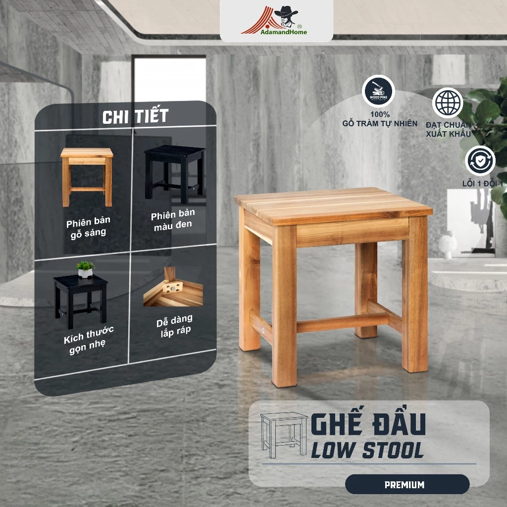 🔥 Ghế Đẩu Gỗ Tràm Tự Nhiên Cao Cấp ADAM&HOME, Nhỏ Gọn, Đa Năng 30x30x30cm – Low Stool đang giảm giá!