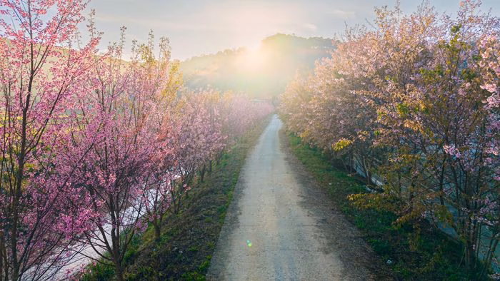 Năm nay, những cánh đồng chè xanh ở Cầu Đất, rừng thông già trên sườn Lang Biang và khu rừng núi Đan Kia đã trở thành hành lang tự nhiên cho hoa mai anh đào. Đường Trại Mát, Quốc lộ 27C và các ngõ hẻm trong khu dân cư đều khoác lên mình màu hồng nhẹ nhàng, tạo nên một bức tranh xuân thanh khiết. Hoa mai anh đào Đà Lạt không chỉ là biểu tượng cảnh quan mà còn là lời chào mừng mùa Tết Nguyên Đán tới mọi du khách.