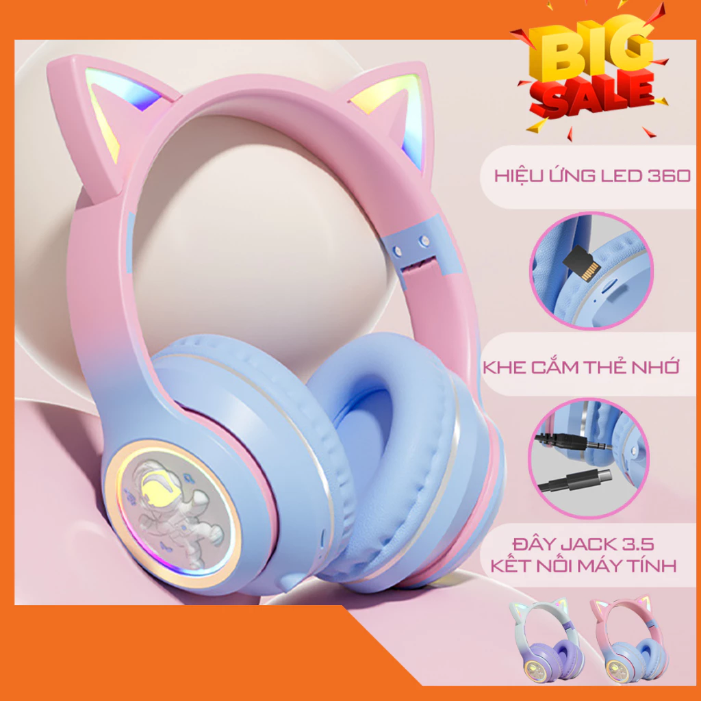 🔥 Tai nghe Chụp tai Không dây Bluetooth Tai mèo Có LED, Chống ồn, Đeo êm tai, Bass mạnh, có Jack 3.5 đang giảm giá!