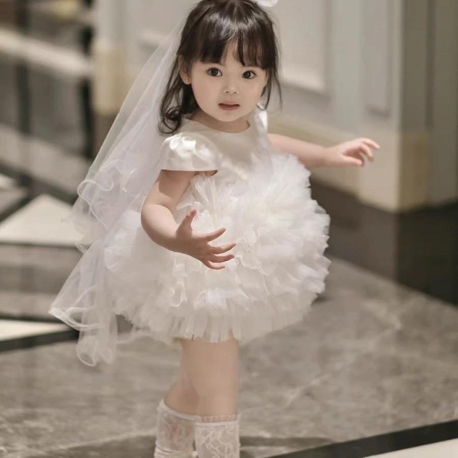 🔥 Hàng sẵn có Vận chuyển nhanh Váy mùa hè màu trắng cao cấp dành cho bé gái Sinh nhật đầu tiên Bắt Chu Hoa Váy cưới bé gái Váy công chúa Váy Petti ngắn tay đang giảm giá!