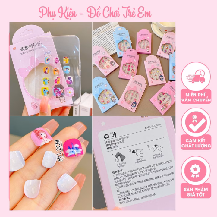 Sản Phẩm Hỗ Trợ: Bộ 12 Móng Tay Giả Cho Bé Có Sẵn Keo Dán