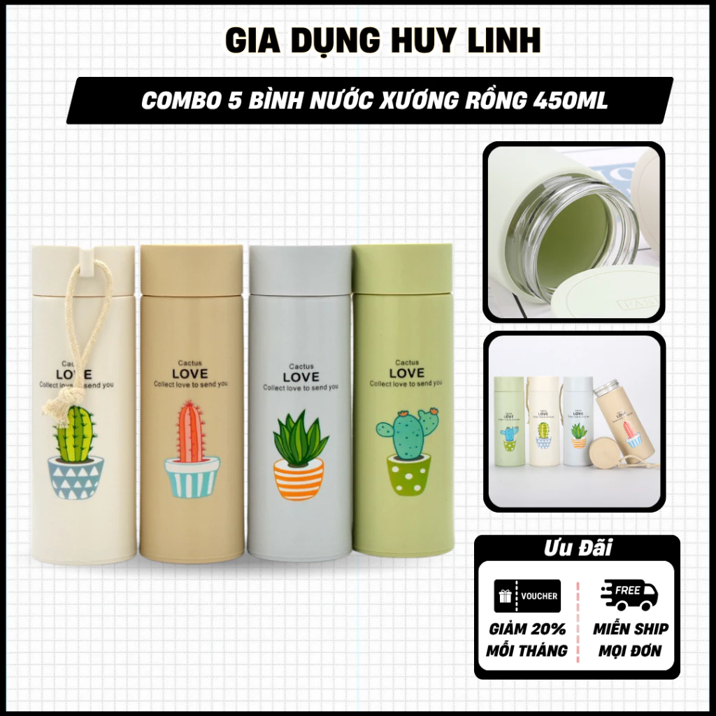 🔥 Combo 5 Bình Nước Xương Rồng Mini Giá Rẻ | Bình Giữ Nhiệt Lõi Thủy Tinh Bọc Nhựa Cách Nhiệt An Toàn đang giảm giá!