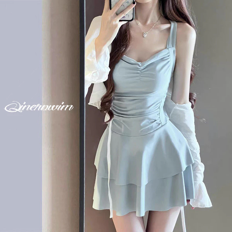 🔥 Đồ bơi ba lê một mảnh màu trơn Đồ bơi kỳ nghỉ xếp ly dễ thương đang giảm giá!