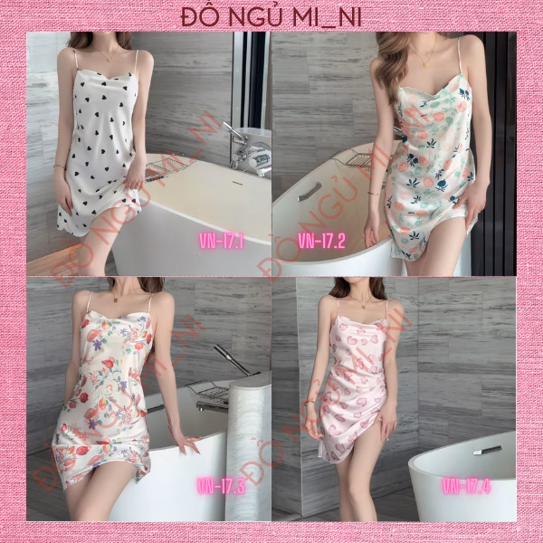 🔥 Váy Ngủ, Đầm Ngủ Lụa 2 Dây Họa Tiết Hoa 3D Cao Cấp Cổ Đổ Lụa Satin Siêu Mát Cho Nữ mã 01 E-16 đang giảm giá!