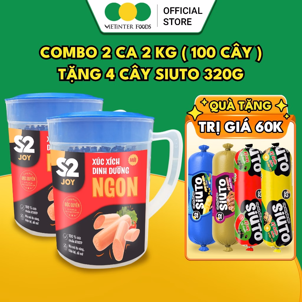 🔥 [Tặng 4 Cây SIUTO] COMBO 2KG Xúc Xích Ngon Dinh Dưỡng Tiệt Trùng S2 Joy Vietinter Foods đang giảm giá!