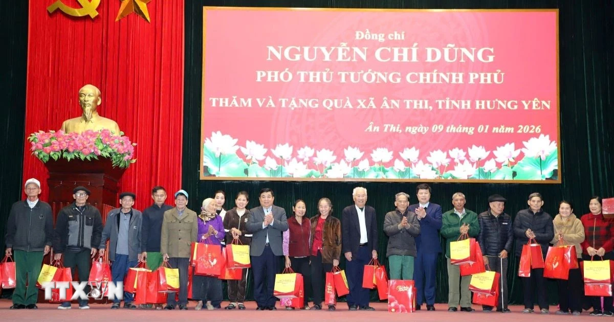 Phó Thủ tướng Nguyễn Chí Dũng đã tới Hưng Yên vào chiều 9/1/2026 để trao hơn 400 suất quà Tết và thiết bị y tế cho các gia đình chính sách, người có công và hộ nghèo.