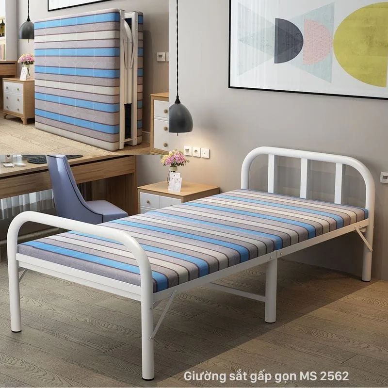 Giường gấp là một loại giường có thể được gấp lại và cất giữ khi không sử dụng. Điều này giúp tiết kiệm không gian và rất hữu ích cho những căn phòng nhỏ hoặc những người muốn tận dụng không gian của mình một cách hiệu quả.