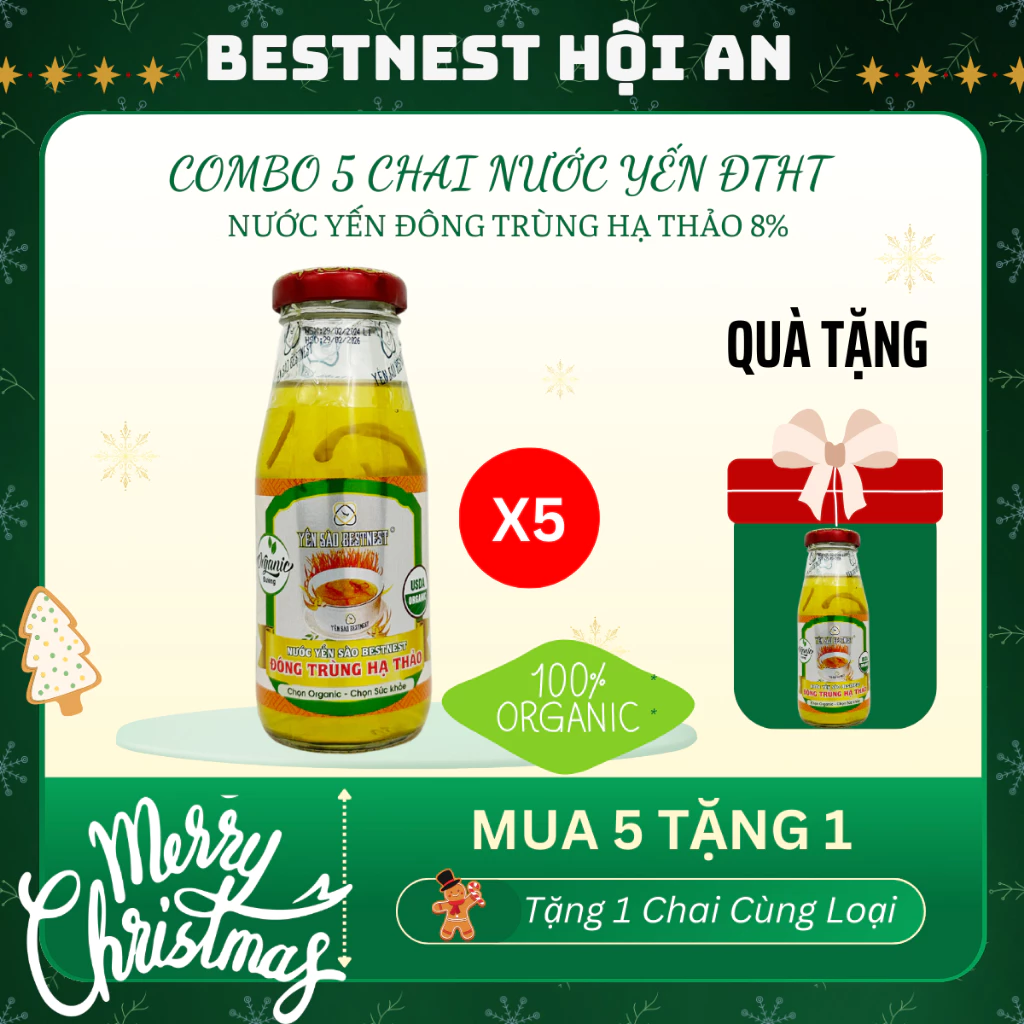 🔥 COMBO 5 CHAI TẶNG 2 – NƯỚC YẾN SÀO ĐÔNG TRÙNG HẠ THẢO 180ML BESTNEST HỘI AN – NƯỚC YẾN ĐƯỜNG ORGANIC đang giảm giá!